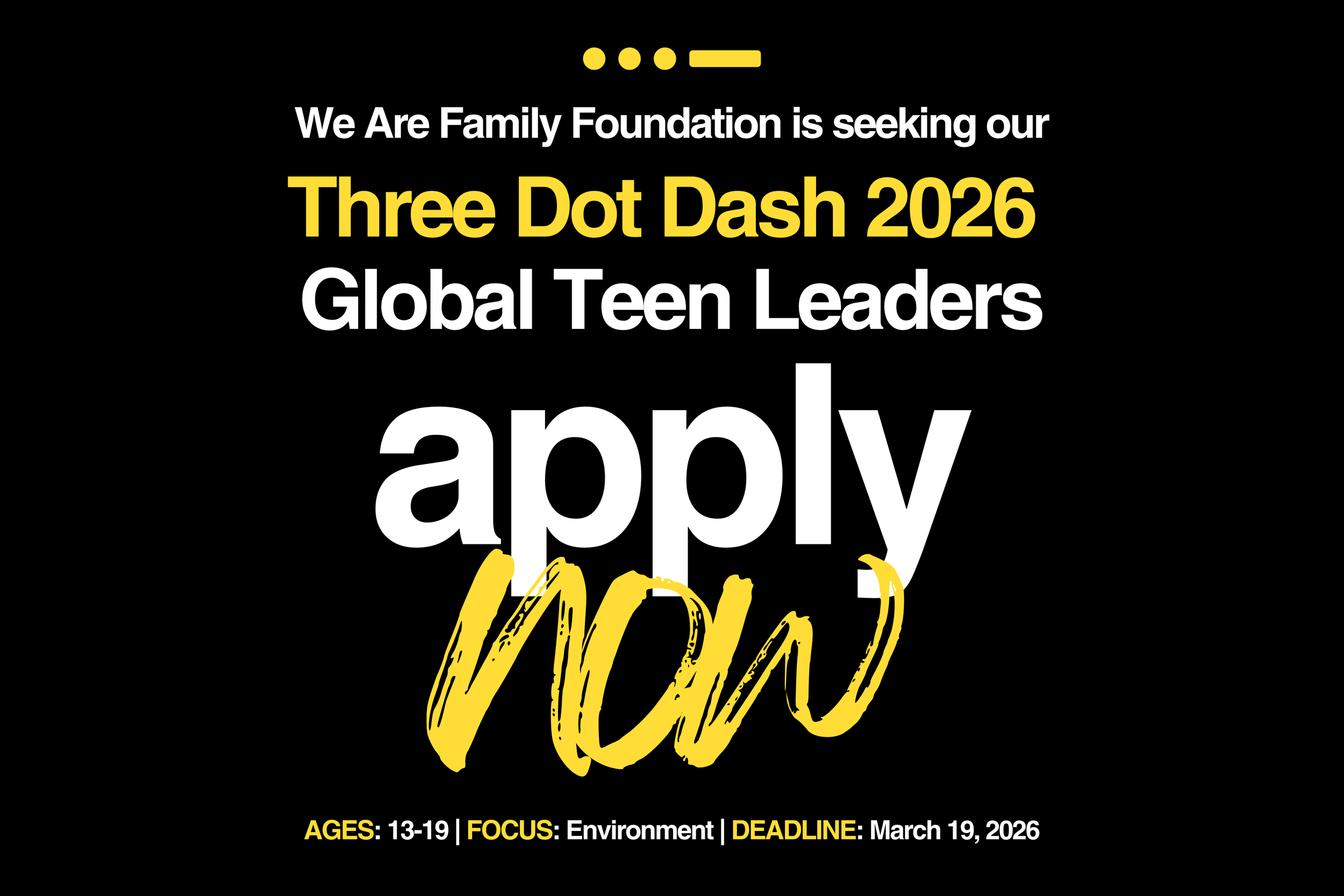 We Are Family Foundation’s Three Dot Dash program empowers Global Teen Leaders (GTLs) who are between the ages of 13-19, working to ensure everyone’s basic human needs are met.